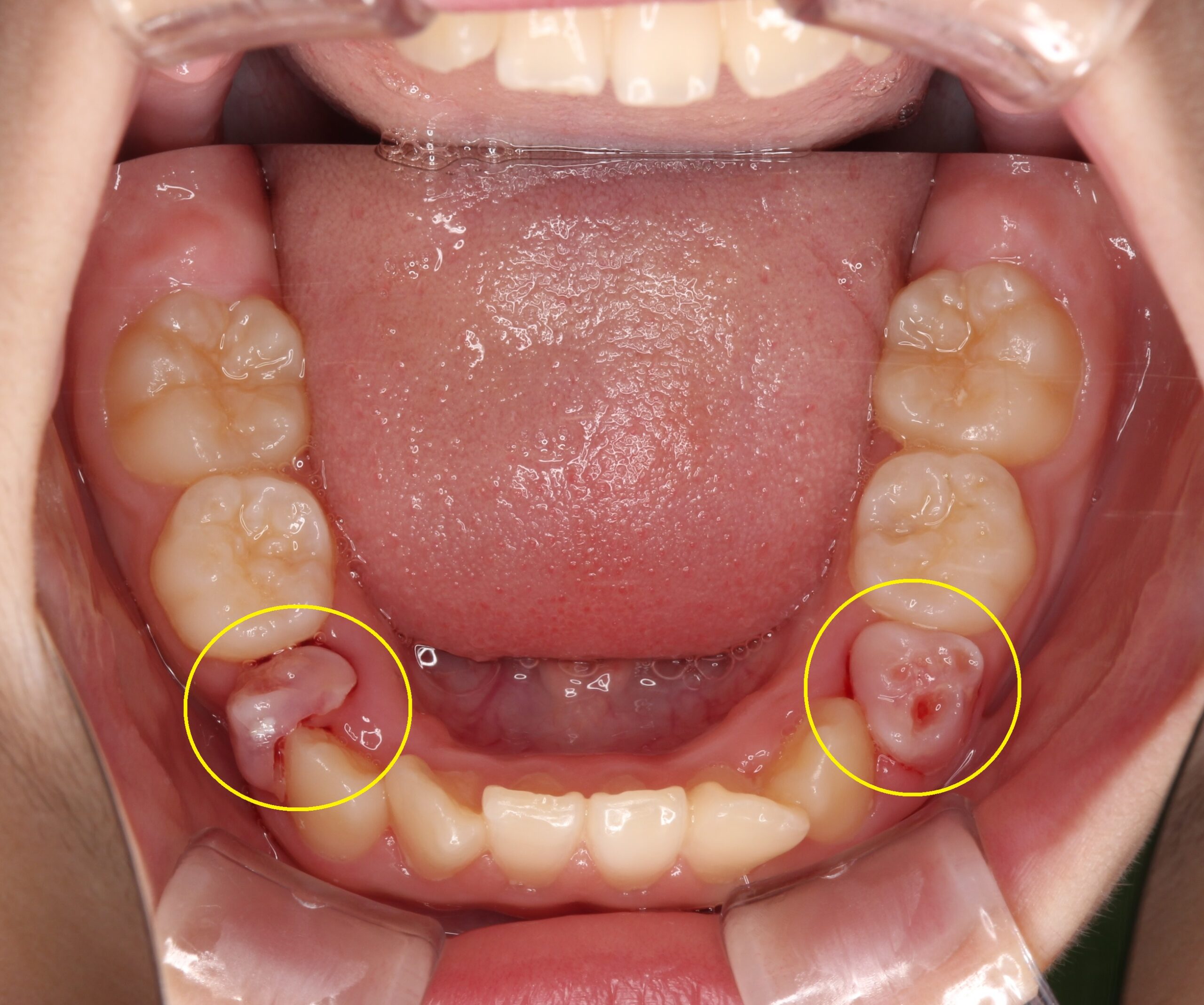 歯の内部で歯の組織が吸収されており、乳歯の抜け替わりの時と同様に